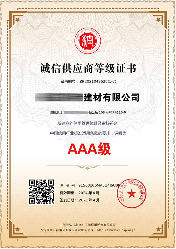 AAA企業(yè)信用評級(jí)網(wǎng)是從事企業(yè)認(rèn)證咨詢、各行業(yè)榮譽(yù)證書辦理的網(wǎng)站,認(rèn)證主要包含企業(yè)AAA信用等級(jí)證書、ISO體系認(rèn)證、服務(wù)認(rèn)證等認(rèn)證產(chǎn)品。出證快、價(jià)格優(yōu)。 企業(yè)AAA信用等級(jí)證書主要包含:AAA企業(yè)信用等級(jí)、AAA企業(yè)資信等級(jí)、AAA重合同守信用、AAA質(zhì)量服務(wù)誠信企業(yè)、AAA誠信經(jīng)營示范單位、誠信企業(yè)家、誠信經(jīng)理人、AAA重質(zhì)量守信用、AAA重服務(wù)守信用、AAA誠信供應(yīng)商等。我們將一如既往繼續(xù)努力,能夠和您合作是我們的榮幸!AAA企業(yè)信用評級(jí)網(wǎng)本著“誠信、專業(yè)、優(yōu)質(zhì)、高效”的宗旨為廣大客戶提供全方位的認(rèn)證咨詢服務(wù),本公司愿與廣大的新老客戶真誠合作、攜手共進(jìn)! |